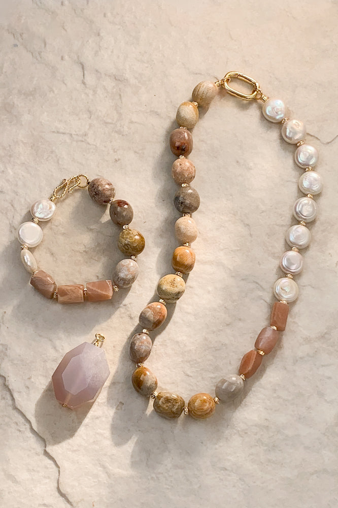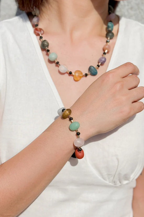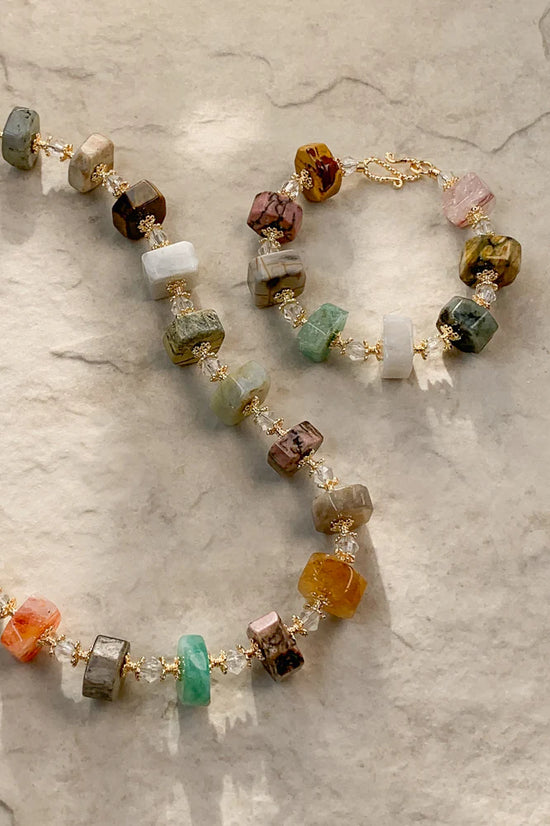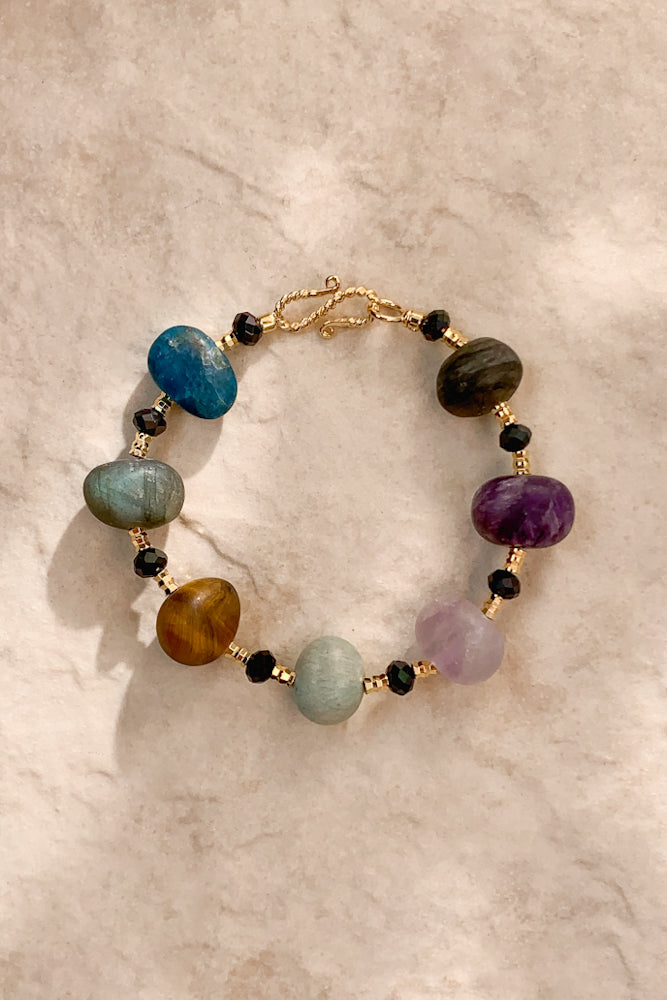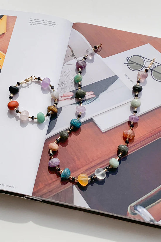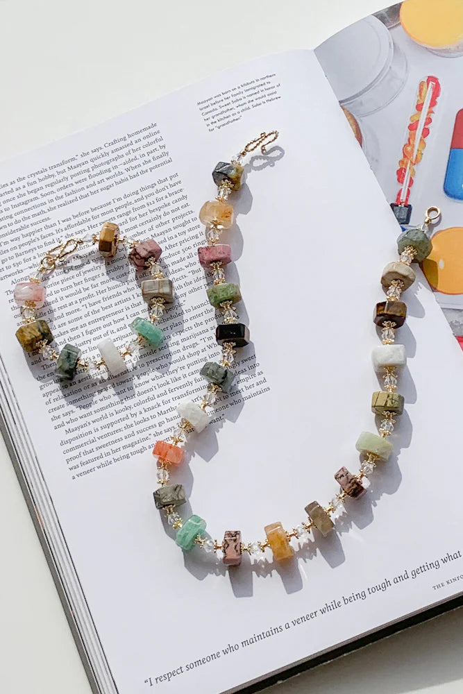 - Mix of gemstones including sodalite, sandstone, green aventurine, labradorite, rose quartz and etc