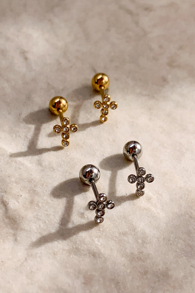 Quick View Sale Loading... Loading... Loading... Loading... Cubic Cross Ear Studs (Stainless Steel) $39.00 - $-39.00 - 18k Gold Plated / Stainless Steel - Water, tarnish and scratch resistant - Measures 0.3" in length, 0.2" width at widest Colour Gold Silver Gold - $39.00 Silver - $39.00 Quantity - + You can't add more of this item to the cart Add to cart This item is a recurring or deferred purchase. By continuing, I agree to the cancellation policy and authorize you to charge my payment method at the prices, frequency and dates listed on this page until my order is fulfilled or I cancel, if permitted. View all details Cubic Cross Ear Studs (Stainless Steel) $39.00