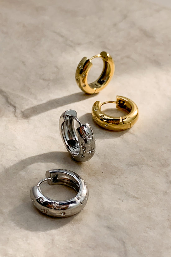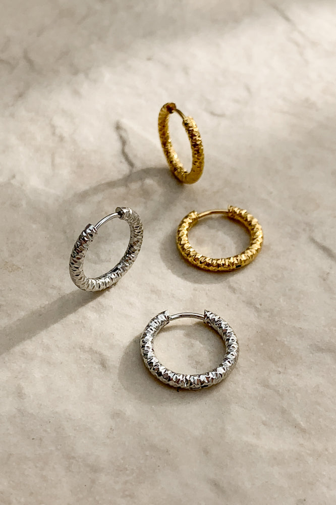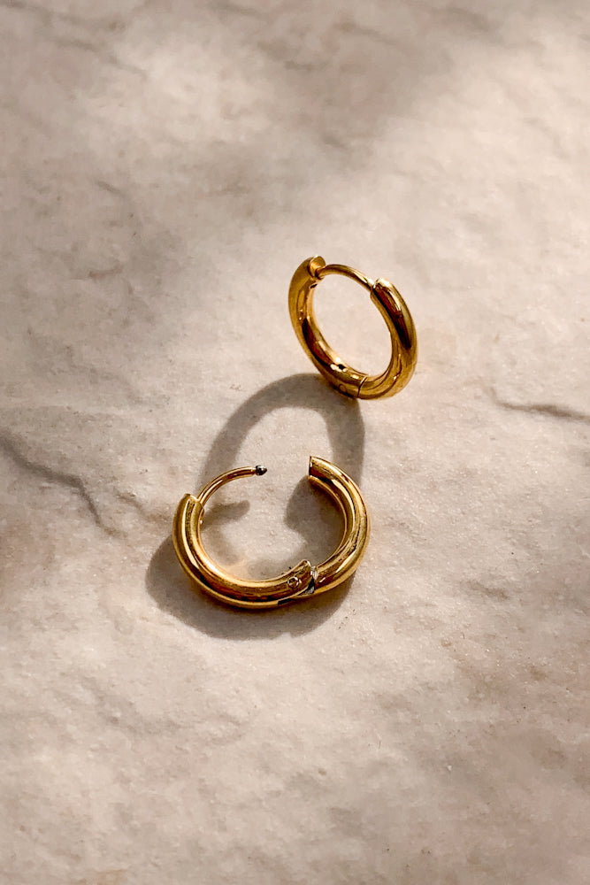 Quick View Sale Loading... Loading... Loading... Loading... Loading... Loading... Loading... Gala Hoops (Stainless Steel) $49.00 - $-49.00 - 18k Gold Plated / Stainless Steel - Water, tarnish and scratch resistant - Measures 0.8" in length, 0.8" width at widest Colour Gold Silver Gold - Sold Out Silver - $49.00 Quantity - + You can't add more of this item to the cart Add to cart This item is a recurring or deferred purchase. By continuing, I agree to the cancellation policy and authorize you to charge my payment method at the prices, frequency and dates listed on this page until my order is fulfilled or I cancel, if permitted. View all details Gala Hoops (Stainless Steel) $49.00