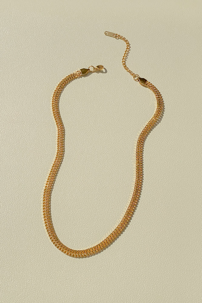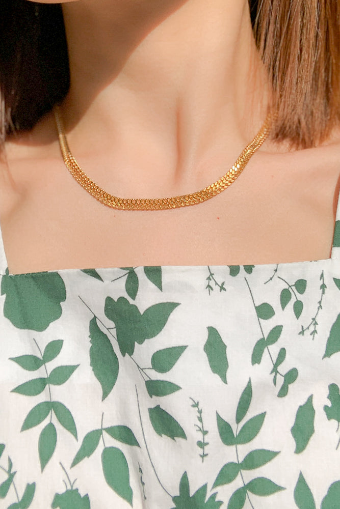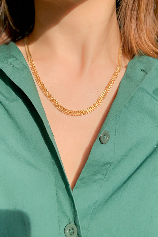 Thin layer of gold electroplated over a base metal - brass, stainless steel or sterling silver. Pieces with a stainless steel or sterling silver base are less prone to tarnishing as compared to other gold plated jewellery such as copper or alloy.